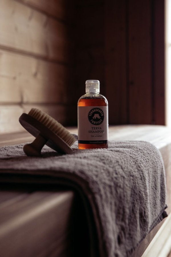 Terva on esillä kartanon tarinassa, minkä lisäksi hotellissamme juodaan tervasnapsia, peseydytään tervasaippualla ja tarjotaan rohkeimmille tervashampootakin. Tervaan viitataan myös kattauksissamme.”